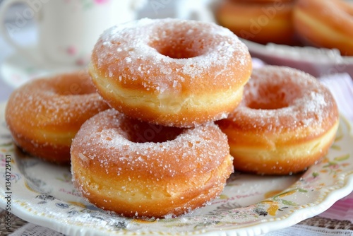 Donuts with sprinkles on white plate in soft light. Artificial intelligence image