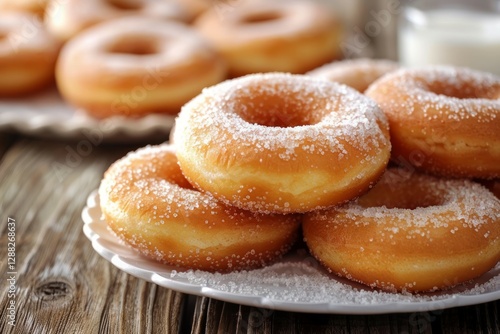 Donuts with sprinkles on white plate in soft light. Neural network AI generated