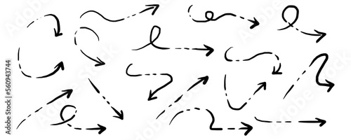 Doodle Arrows icons Set. arrow icon with various directions. hand drawn style. isolated on a white background. vector illustration