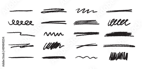 Doodle brush underlines set. Black line sketches with pen marks. Hand drawn vector elements on white background.