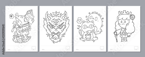 Doodle coloring page for children and adults. Black and white vector characters. Vector doodle illustration