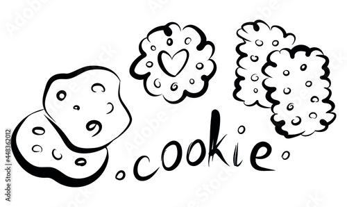 Doodle cookie and lettering coockie on white. Vector illustration. Perfect for dessert menu or food package design, logo.