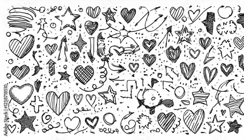 Doodle cute star, heart, arrow pen line elements. Doodle heart, emphasis, star, sparkle decoration symbol set icon. Simple sketch line style text decoration, emphasis elements. perfect any project.