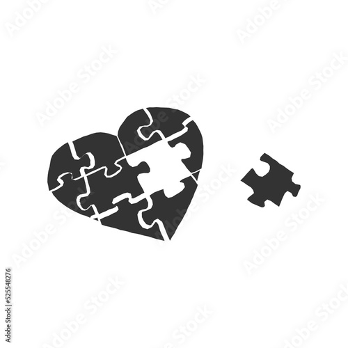 Doodle hand drawn illustration. The heart made of puzzles. Sketch collection.