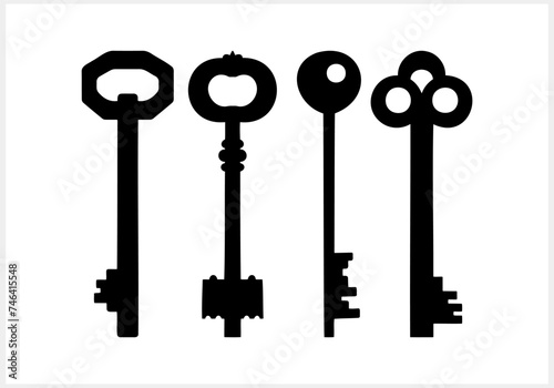 Doodle key icon isolated. Hand drawn art. Stencil vector stock illustration. EPS 10