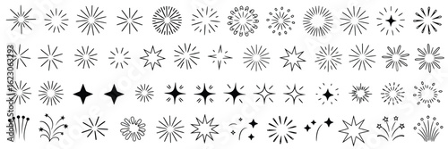Doodle Line Sparkle Vector Set Hand-Drawn Shining Stars, Comic Bursts, and Decorative Glowing Effects for Cartoon Explosions, Twinkles, Fireworks, and Dynamic Light Flashes