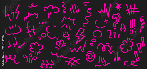 Doodle manga comic expression elements. Set of anime emotion effect.