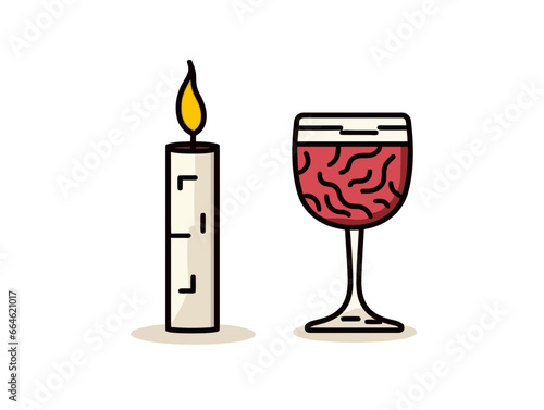 Doodle Passover candle and wine cup, cartoon sticker, sketch, vector, Illustration, minimalistic