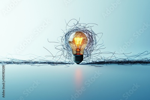 Doodle Problems solution creative concept. Creative Concept of Lightbulb Surrounded by Abstract Wires in Modern Minimalistic Design