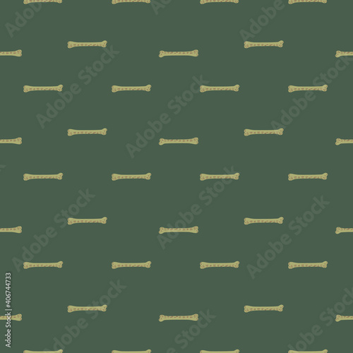 Doodle seamless pattern with cartoon simple bones silhouettes. Dark green background.