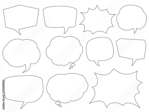Doodle style pop speech bubble illustration set speech bubble frame handwritten style decoration. POP frame for comic or manga.