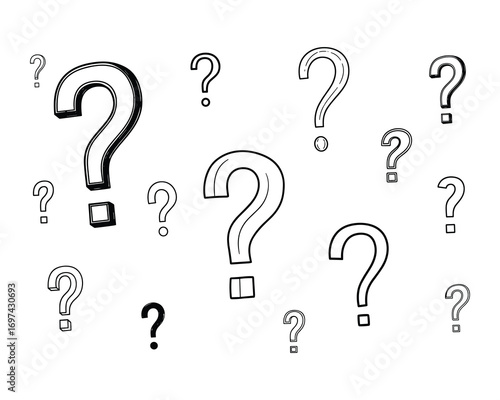Doodle Style Question Marks Pattern, Hand Drawn Black and White Vector Illustration