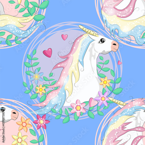 Doodle unicorn pattern for textile design. Animal cartoon. Ditsy print. Trendy seamless pattern. Fabric pattern.