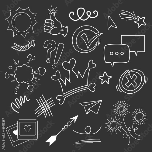 Doodle vector set illustration with hand draw line art style vector. Crown, king, sun, arrow, heart, love, star, swirl, swoops, emphasis, for concept design