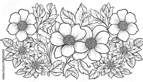 Doodled Chrysanthemum Floral Frame With Background,illustration, cute, flower, leaf, nature, single flower, vector, plant, black and white, doodle, femininity, monochrome, copy space,56