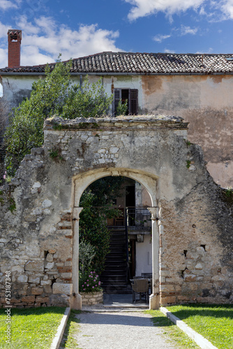 Door on the Juraj Dobrila Square, former entrance to Bishop's Palace, Porec, Croatia, Istria