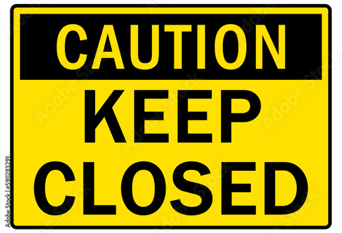 Door safety sign and labels keep closed