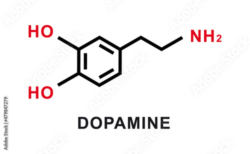 Dopamine chemical formula. Dopamine chemical molecular structure. Vector illustration