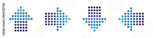 Dot arrows blue icon set. Arrow symbol. Direction, cursor, pointer sign. Decorative arrows. Modern design elements for apps, interface, business and project. Flat design. Vector illustration.