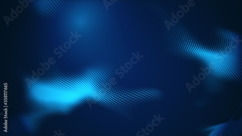 Dot blue wave light screen gradient texture background. Abstract technology big data digital background. 3d rendering.