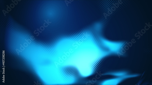 Dot blue wave light screen gradient texture background. Abstract technology big data digital background. 3d rendering.