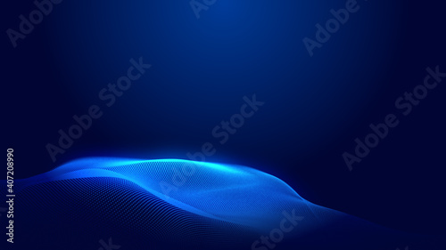 Dot blue wave light screen gradient texture background. Abstract technology big data digital background. 3d rendering.