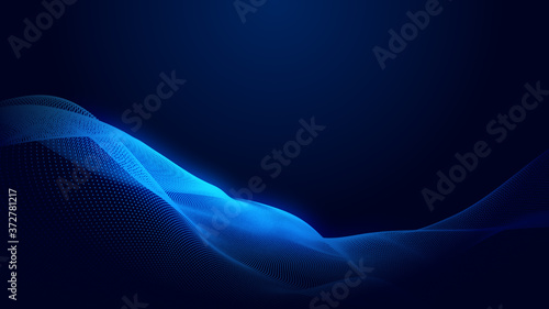 Dot blue wave light screen gradient texture background. Abstract ai technology big data digital background. 3d rendering.