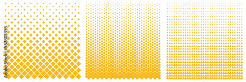 Doted Halftone Gradient in sequare, hexagon and triangle shape. Geometric halftone