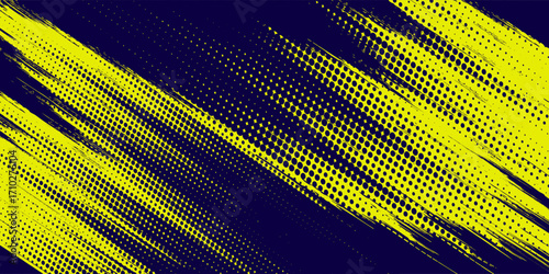 Dots halftone yellow and dark blue color pattern gradient grunge texture background. vector grunge sport.modern