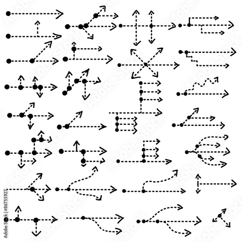 dotted arrows set, hand drawn arrows set, sketched style, doodle