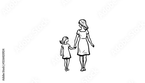 Dotwork Tattoo.Mother and daughter holding hands walking together