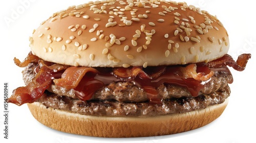 Double bacon burger with sesame seed bun.