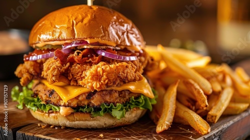 Double Cheddar Chicken Burger with Fries