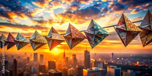 Double Exposure Origami Banner: Abstract Art, Paper Craft, Japanese Design