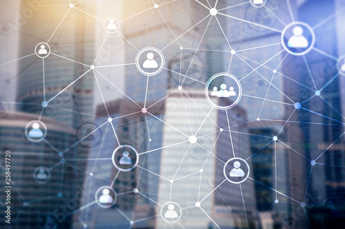 Double exposure people network structureþþ HR - Human resources management and recruitment concept.