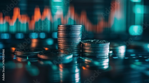 Double Exposure Stock Market Graph with Coins