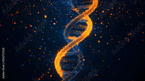 double helix structure, symbolizing DNA manipulation for gene scissors, the background is dark blue, DNA is in orange and dark blue colors, modern.