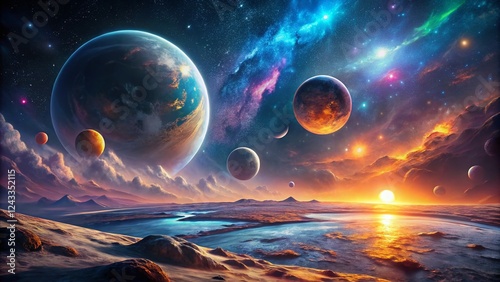 Double Moonscape: Swirling Gas Giants in Night Sky - 87 AD Sci-Fi Fantasy Art