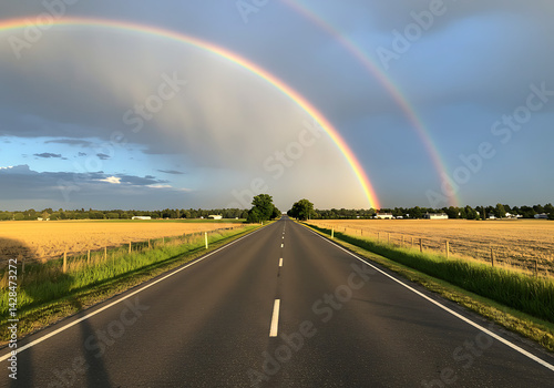 Double Rainbow over Country Road: A Stunning Natural Phenomenon
