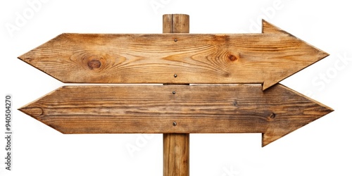Double Wooden Arrow Signpost, White Background, Rustic Wood, Direction, Signage, Wayfinding, Pointer