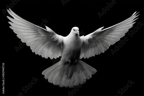 Dove Border. Symbol of Peace and Hope in Abstract Black and White Design