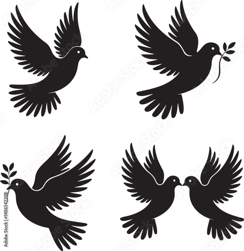 Dove silhouette set vector illustration isolated On Transparent Background