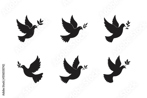 dove with olive branch vector silhouette