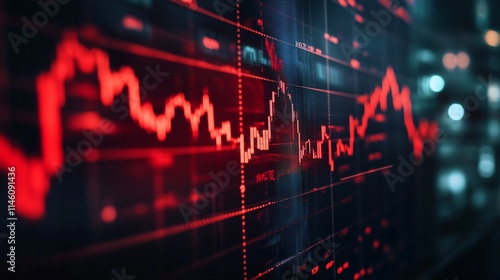 Dow Jones Stock Market goes down. Modern creative red toned economic data graph background.