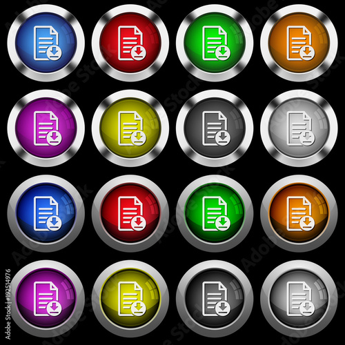 Download document white icons in round glossy buttons on black background