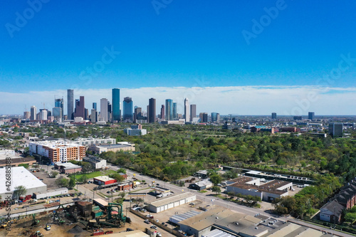 Downtown Houston, Texas on a beautiful sunny day - Iconic skyline view of the city