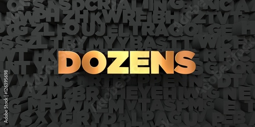 Dozens - Gold text on black background - 3D rendered royalty free stock picture. This image can be used for an online website banner ad or a print postcard.