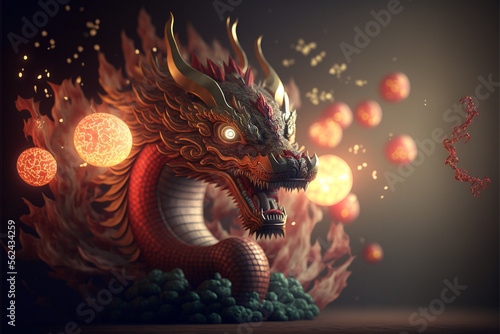 Dragon for Chinese Lunar New Year Festival Celebration Generative AI