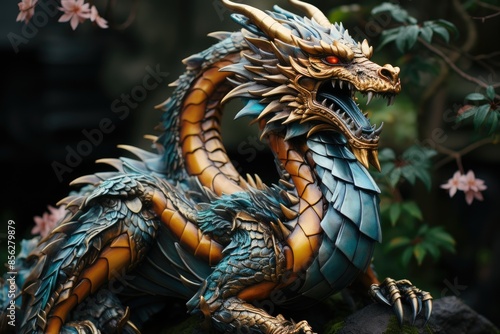 Dragon rests on treasure in enchanted kingdom., generative IA