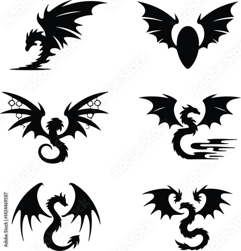 Dragon Wing Silhouette Set | Fantasy Vector Collection Mythical Dragon Wings | Black Silhouette Illustration Pack